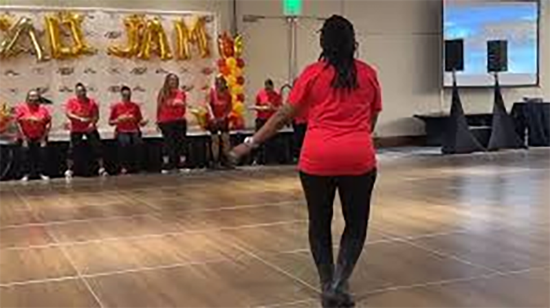 Three quick steps, first step is back, 2nd step is a tap, and 3rd step is a crossover step. For example, if it's the on the right, step back right foot, tap the left in place, cross right in front of left. |